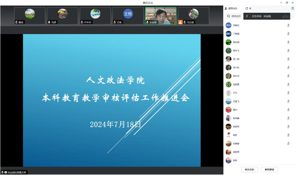7月18日晚上,我院召开全体教师线上会议,总结前一阶段本科教育教学审核评估工作,安排部署下一阶段本科教育教学审核评估工作。会议由院长徐金超主持。