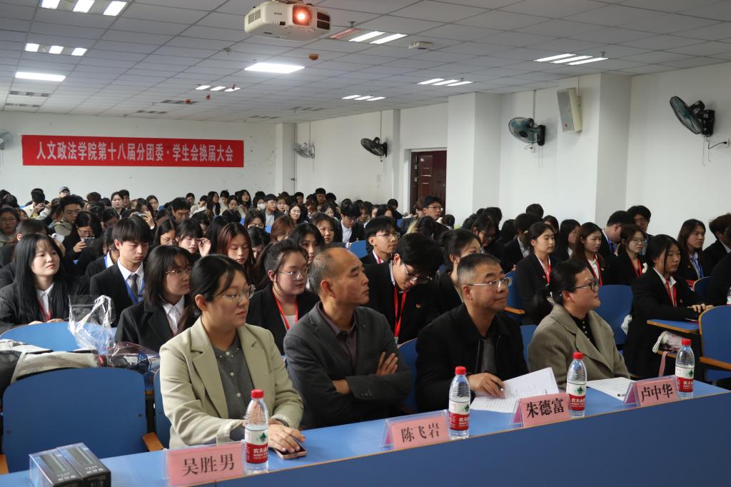 2025年10月22日,我院第十八届分团委·学生会换届大会在9A407教室举行。学院党委副书记朱德富、团委书记卢中华、组织员陈飞岩及辅导员吴胜男老师出席,学生会全体成员与各班班委成员参会。