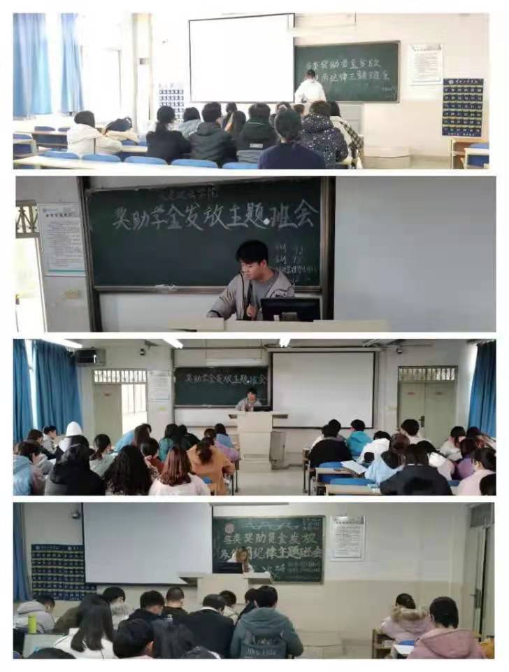 本次班会主要向大家讲解了学校奖助学金的发放政策,并从奖助学金的使用权限、使用原则等方面详细介绍,对受资助的学生在奖助学金的使用方面提出了具体要求,强调不得发生任何提留、收取、侵占、挪用、平分、二次分配奖助学金的情况;不组织、不参与奖助学金的违规使用;不收取或变相收取接受奖助学金学生的好处。如有违反相关纪律的情况,一经查实,严格追究当事人责任。