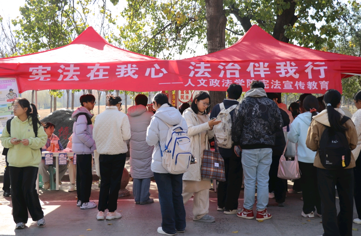 为加强宪法法治教育,弘扬宪法精神,12月4日,人文政法学院精心组织,在南校区三棵树广场、学生社区、教学楼及学生餐厅等区域同步开展了主题为“宪法驻我心,法治伴我行”的国家宪法日宣传教育活动。