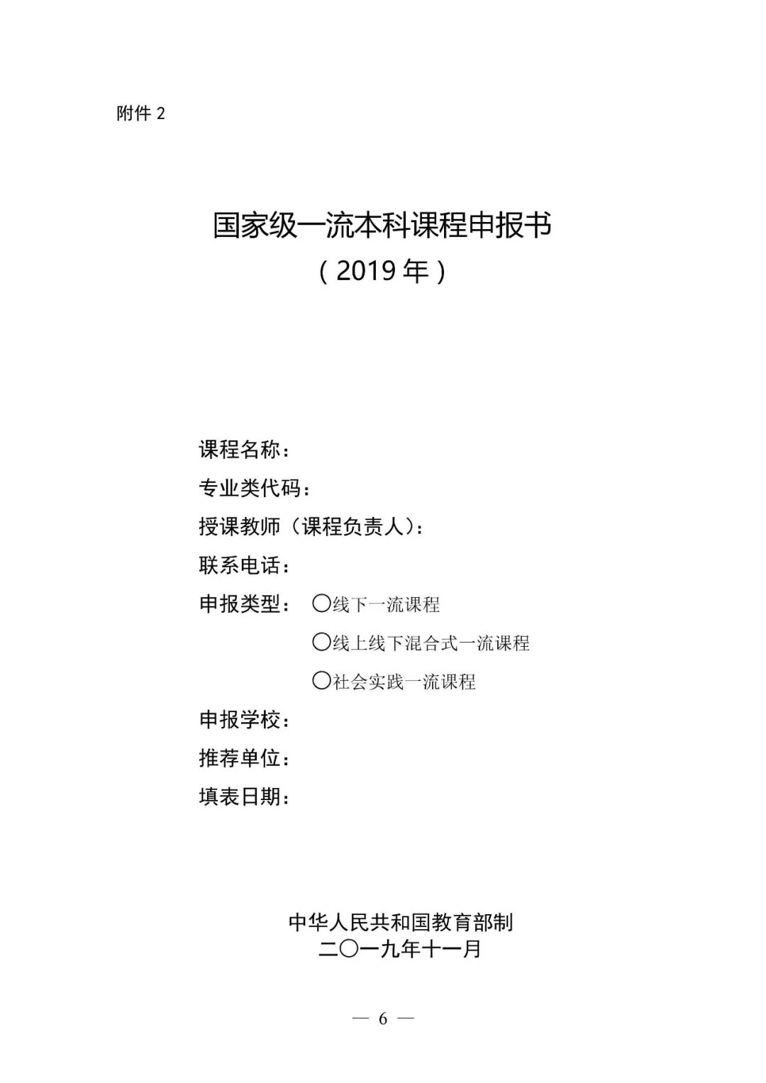 为贯彻落实《教育部关于一流本科课程建设的实施意见》(教高〔2019〕8号,以下简称《实施意见》),实施一流本科课程“双万计划”,在先期启动2019年国家精品在线开放课程(现国家级线上一流课程)和国家虚拟仿真实验教学项目(现国家级虚拟仿真实验教学一流课程)推荐认定工作后,现决定开展2019年国家级线下一流课程、国家级线上线下混合式一流课程和国家级社会实践一流课程推荐认定工作,现将有关事项通知如下。