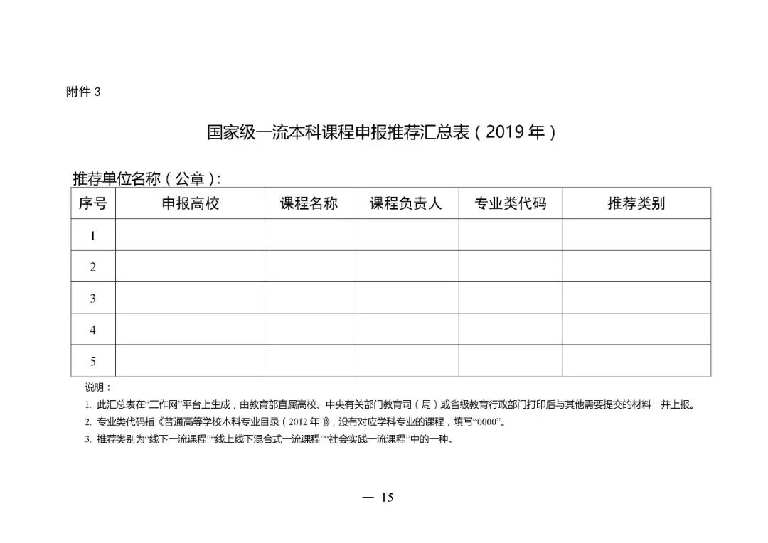 3. 国家级一流本科课程申报推荐汇总表(2019年)