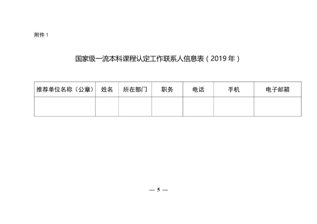 附件:1. 国家级一流本科课程认定工作联系人信息表(2019年)