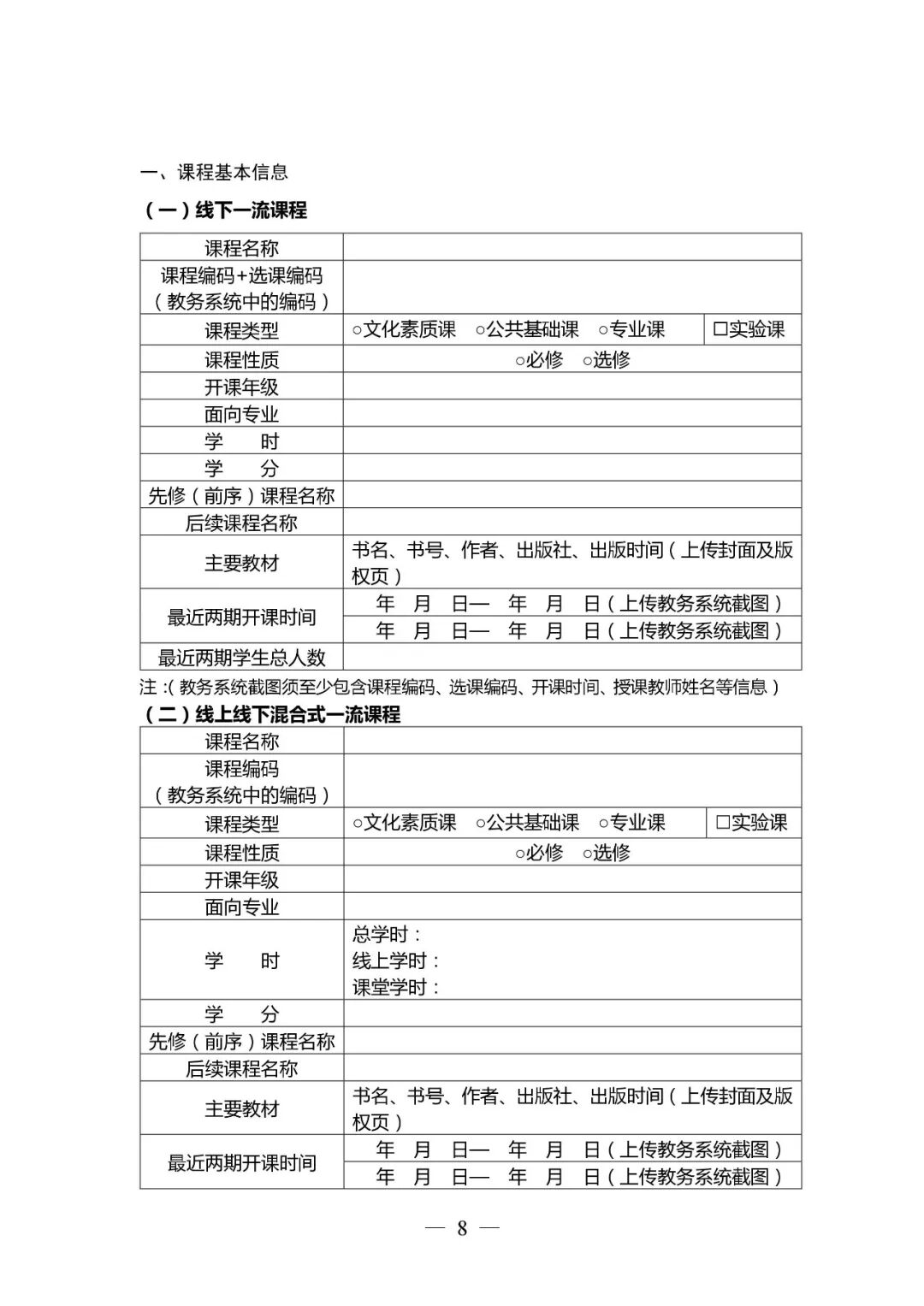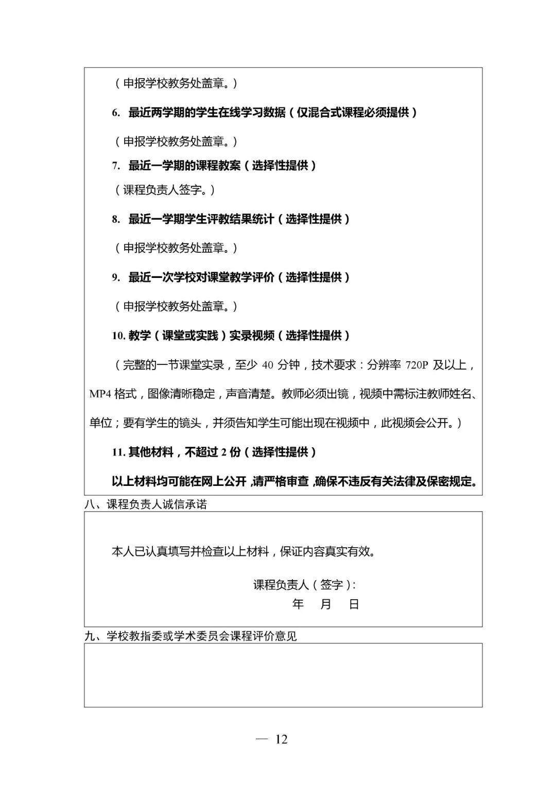 有关部门和各高校要按照《“双万计划”国家级一流本科课程推荐认定办法》(见《实施意见》附件)的有关要求,开展国家级线下一流课程、国家级线上线下混合式一流课程和国家级社会实践一流课程的申报推荐工作。评价遴选程序要保证规范、科学,确保课程质量。